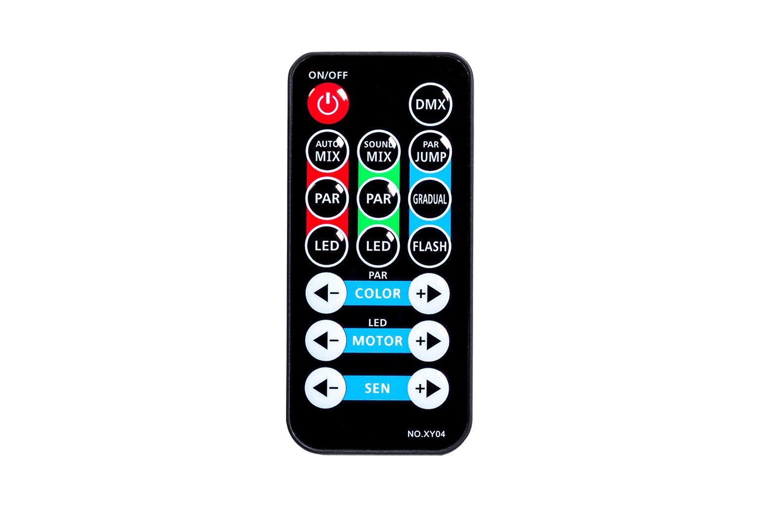 - DMX, Auto, Sound Active, and Master/Slave programs