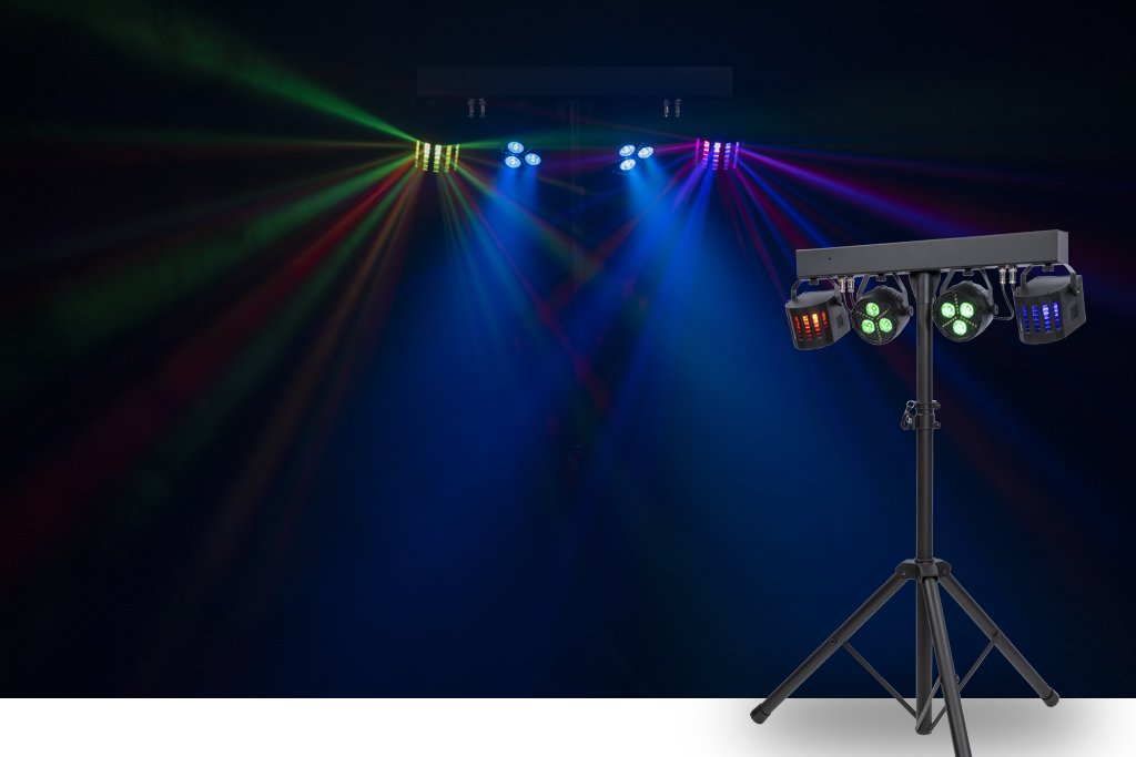 An included 7ft lighting stand lifts the PartyBar GO system high for maximum area coverage, while still being compact and light enough to freely move your system around the room.