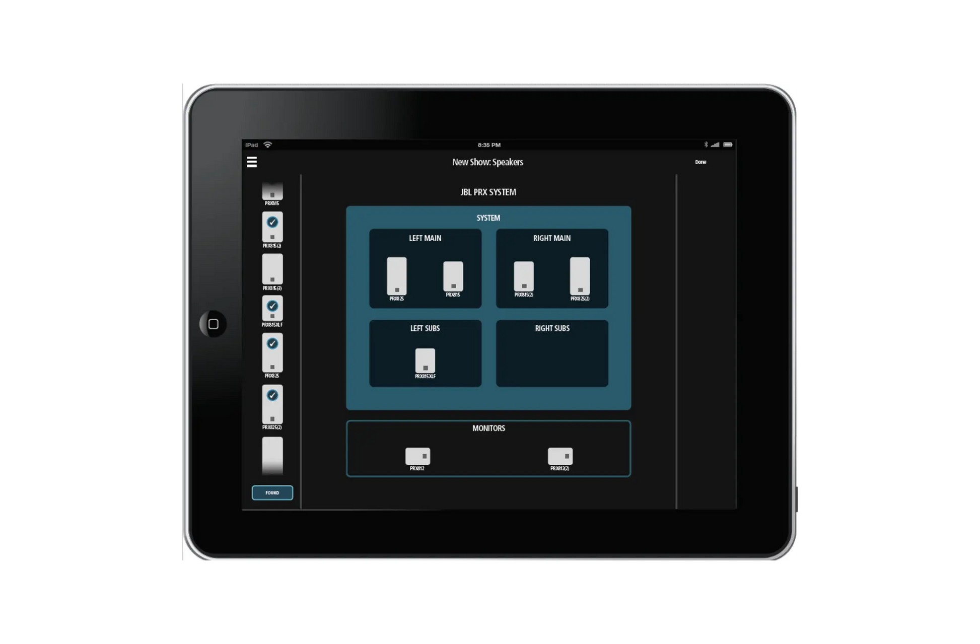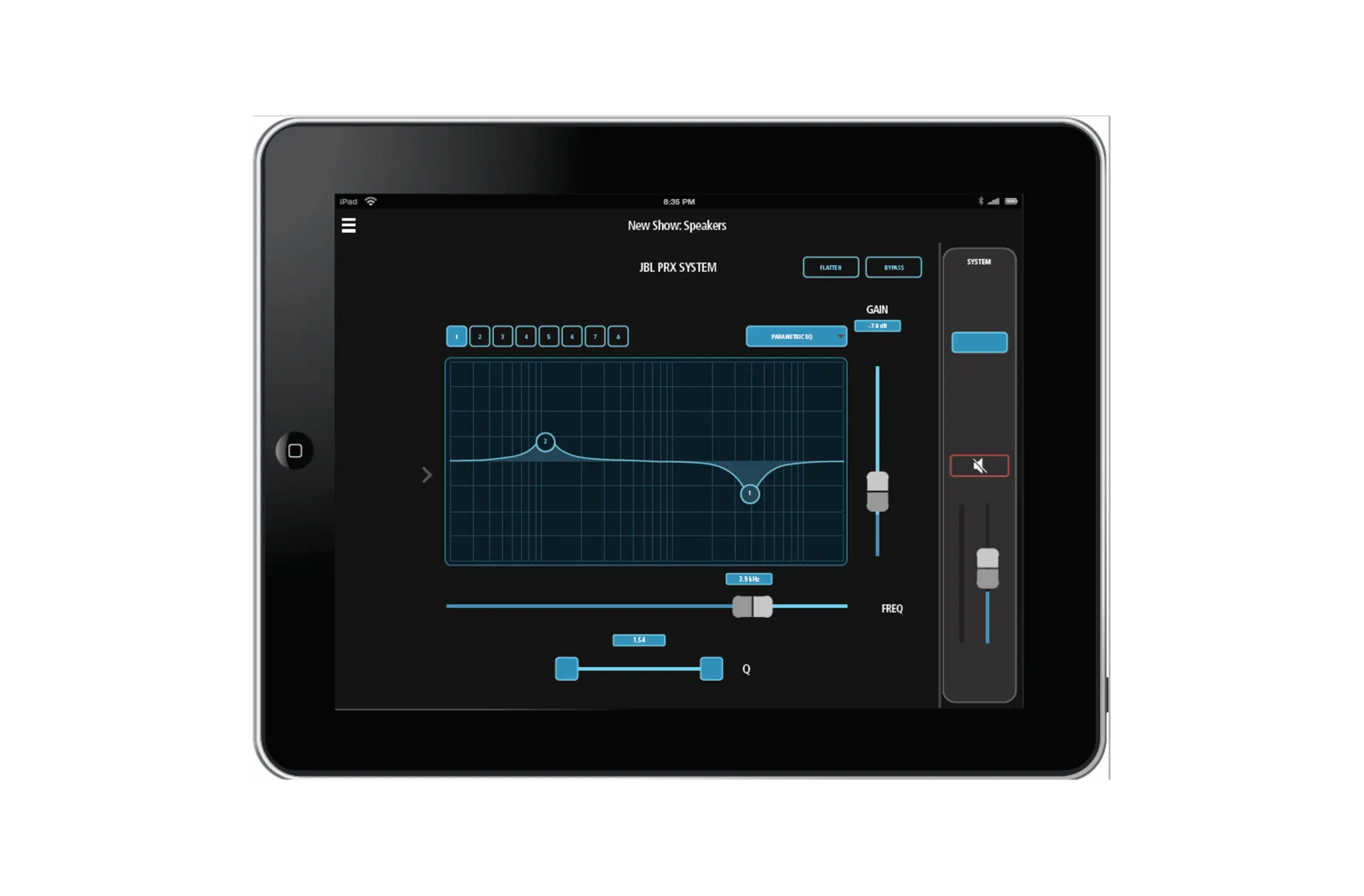 Free PRX Connect mobile app for iOS and Android provides wireless control over volume levels, 8-band parametric EQ and up to 50ms of speaker delay to fine-tune your sound