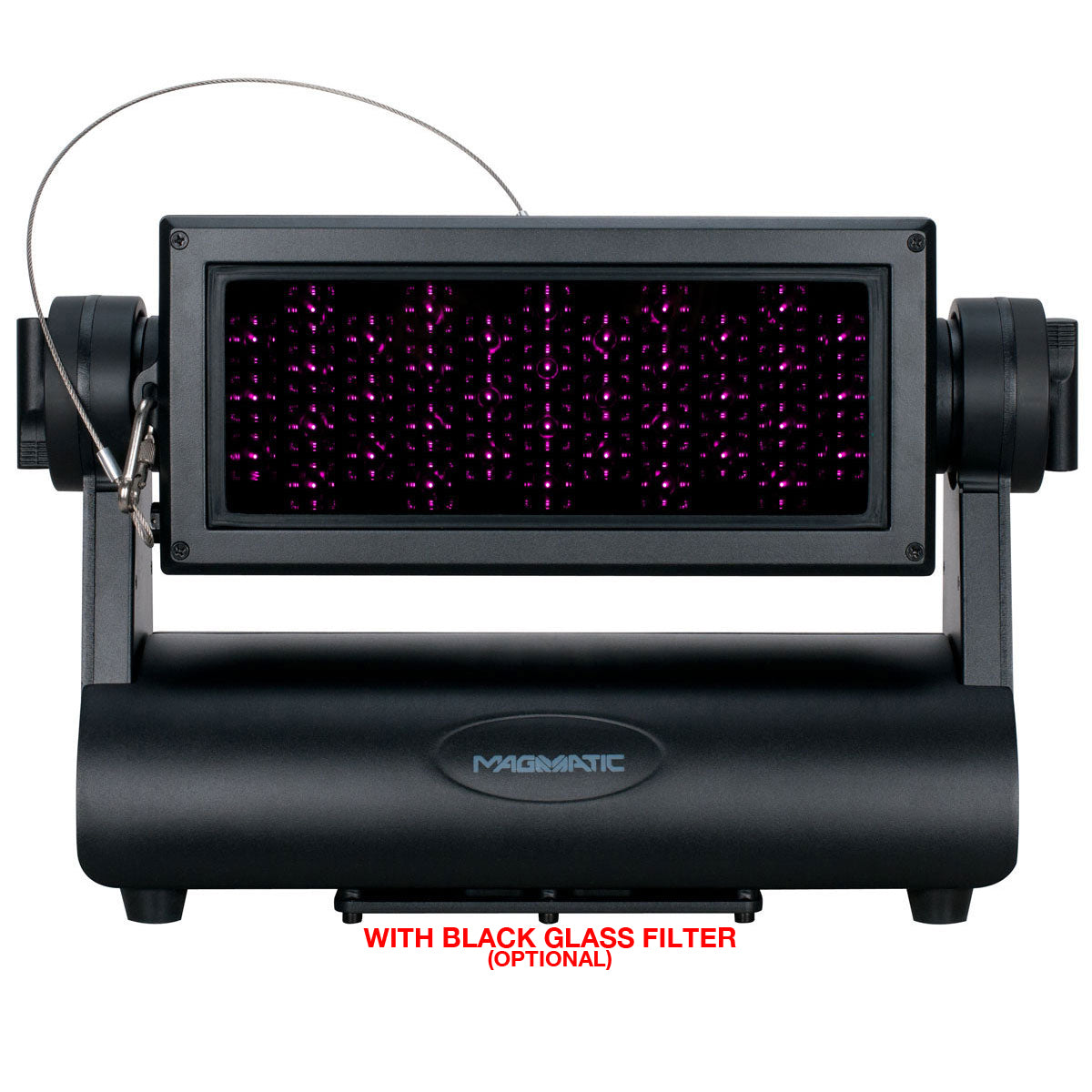 Black glass filters are available for all Prisma™ series UV LED lighting products. The black glass filter blocks all visible light, allowing only the ultraviolet spectrum to effectively illuminate the UV reactive material and nothing else. By completely blacking out all visible light, the black glass filters allow Prisma fixtures to hide discreetly in themed environments, clubs, glow events, or productions of all types.