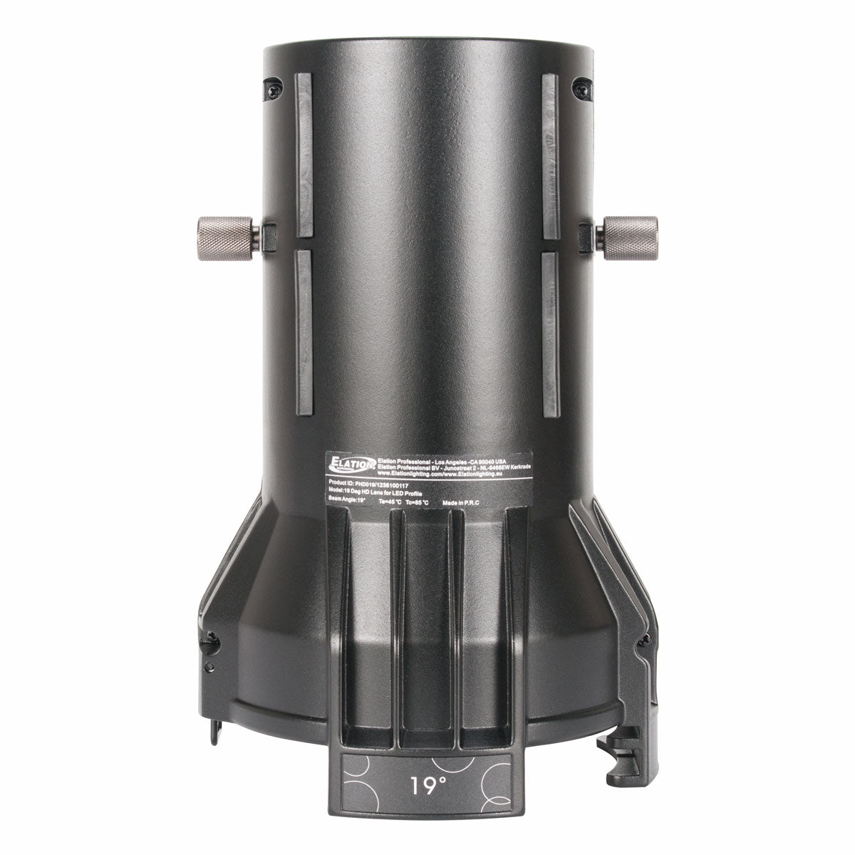 The Profile HD 19 Degree Lens is a high definition enhanced output lens designed to fit all Elation Profile ellipsoidal models. The lens features dual advanced fixed length aspheric lenses with a non-glare coating, and integrated 6.25" (159mm) gel frame holder (gel frame not included), and a rugged die-cast aluminum housing.