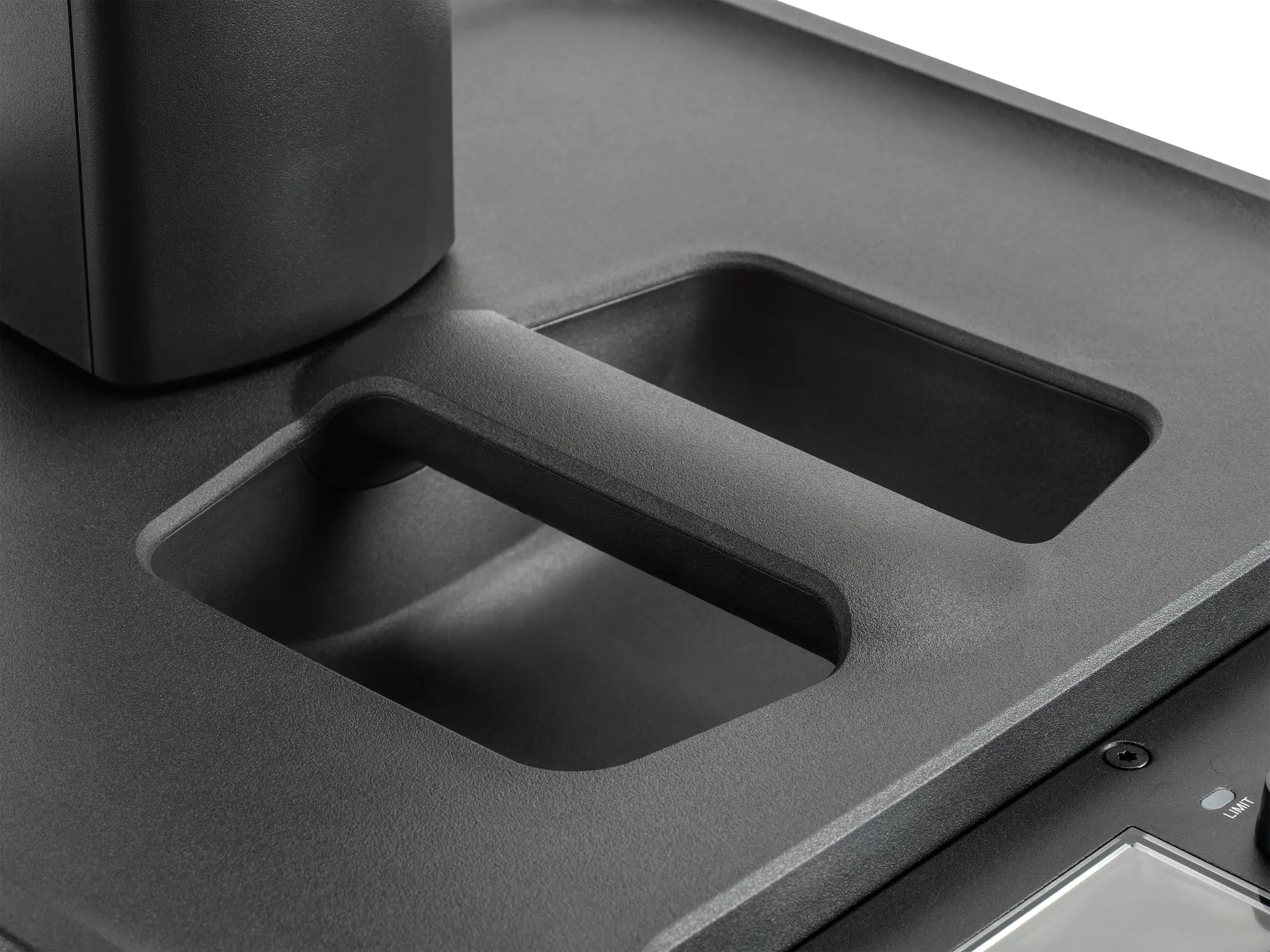 Custom-designed high-frequency transducers feature copper-capped pole pieces to reduce inductance for smoother, more precise high-frequency response; HF transducers exhibit less power compression, offering more natural performance without the need for heavy DSP. High-frequency performance is optimized down to 500 Hz, allowing the woofer to deliver a more natural, accurate bass sound. PRX ONE’s acoustically optimized woofer delivers superior performance without DSP, reducing “huffiness.”