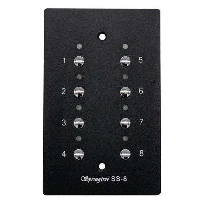 Satellite Stations don’t save or send any DMX data but merely communicate with a master wall station, which sends the DMX data to your lights. The SS-8 features eight buttons that let you select any of your eight preprogrammed scenes.