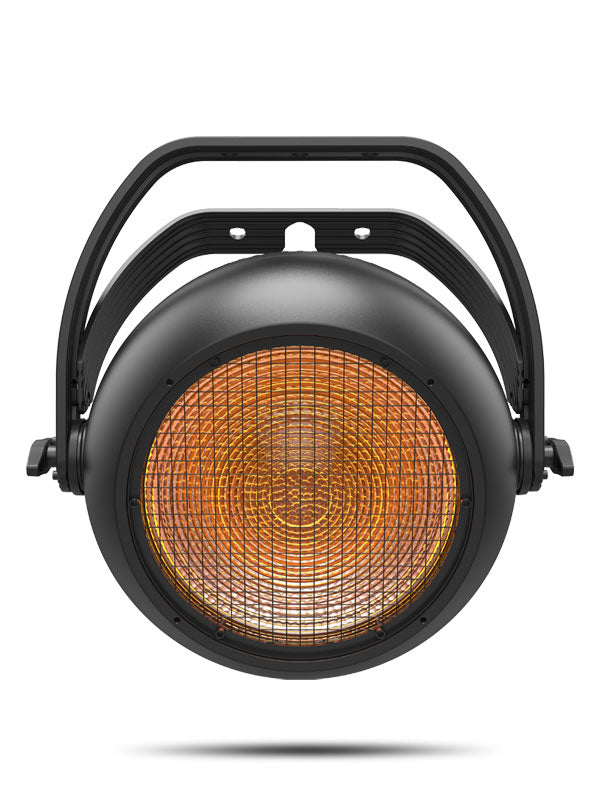 STRIKE 1 is a big, bold, outdoor-ready blinder powered by an intense 230 W warm white LED source. It is also an awesome strobe and a wide area floodlight. Its IP rated fan keeps it cool enough for use as a wash while IP rated direct power and DMX connections eliminate undesirable whips. An emulated “amber shift” warms the Color Temperature of the light as it dims to mimic incandescent lights perfectly.