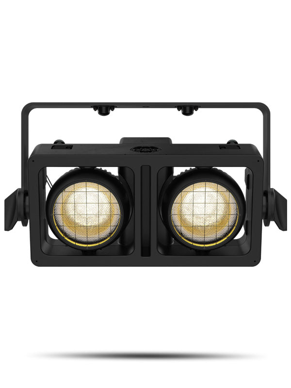 STRIKE Array 2 is an outdoor-ready audience blinder powered by two intense warm white LEDs housed in independently focusable pods. An emulated “amber shift” warms the color temperature of the light as it dims to deliver a classic tungsten look. Its variable PWM and high CRI make it ideal for broadcast applications. Thanks to a custom interlocking system CHAUVET Professional has developed, STRIKE Array 2 can be interconnected with multiple Array units for scalable design configurations without any tools. Omega-Bracket locks are also installed both on the yoke and the back of the IP65 blinder to give you a streamlined truss mounting process.