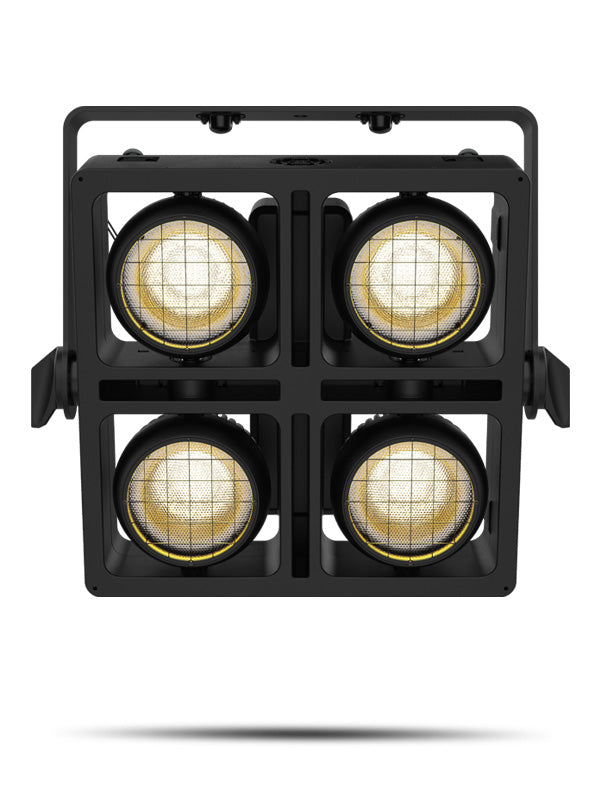 STRIKE Array 4 is an electrifying outdoor-ready audience blinder with four high-power warm white LEDs housed in independently focusable pods. An emulated “amber shift” warms the color temperature of the light as it dims to deliver a classic tungsten look. Its variable PWM and high CRI make it ideal for broadcast applications. Thanks to a custom interlocking system CHAUVET Professional has developed, STRIKE Array 4 can be interconnected with multiple Array units for scalable design configurations without any tools. Omega-Bracket locks are also installed both on the yoke and the back of the IP65 blinder – giving you a streamlined truss mounting process.