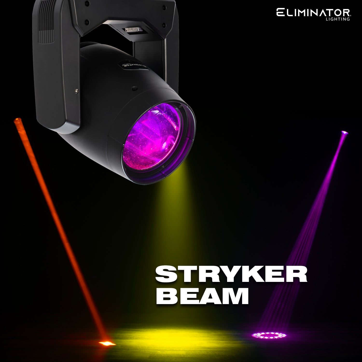 The Stryker Beam offers fast, precise movement as well as a diverse collection of beam-shaping tools, which provide lighting designers lots of creative potential. A dedicated GOBO wheel features 11 die-cut metal gobos (plus open), which include two beam reducer options alongside a carefully curated selection of patterns designed for generating aerial effects. A motorized focus function allows GOBOs to be kept sharp, while a separate color wheel offers 13 vibrant options (plus white) and an additional 6-color flag allows the creation of multi-colored beam effects, A built-in frost filter allows the fixture to switch from a hard-edge beam to a soft wash of light. Finally, two circular rotating prisms are provided, 8-facet and 16-facet, which can be used to split up the narrow beam into a wider break-apart effect. Both prisms may be layered for an animated effect.