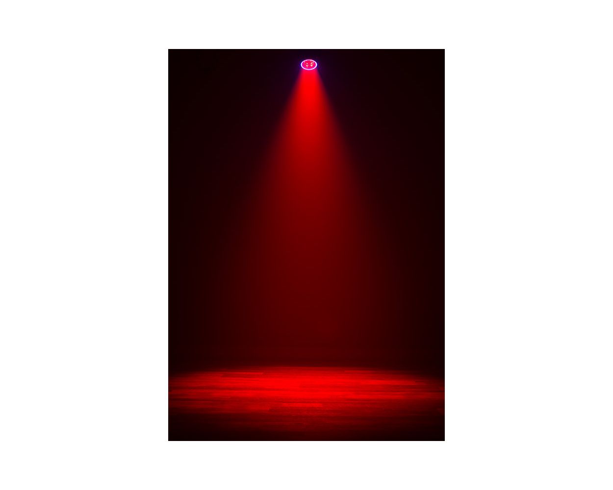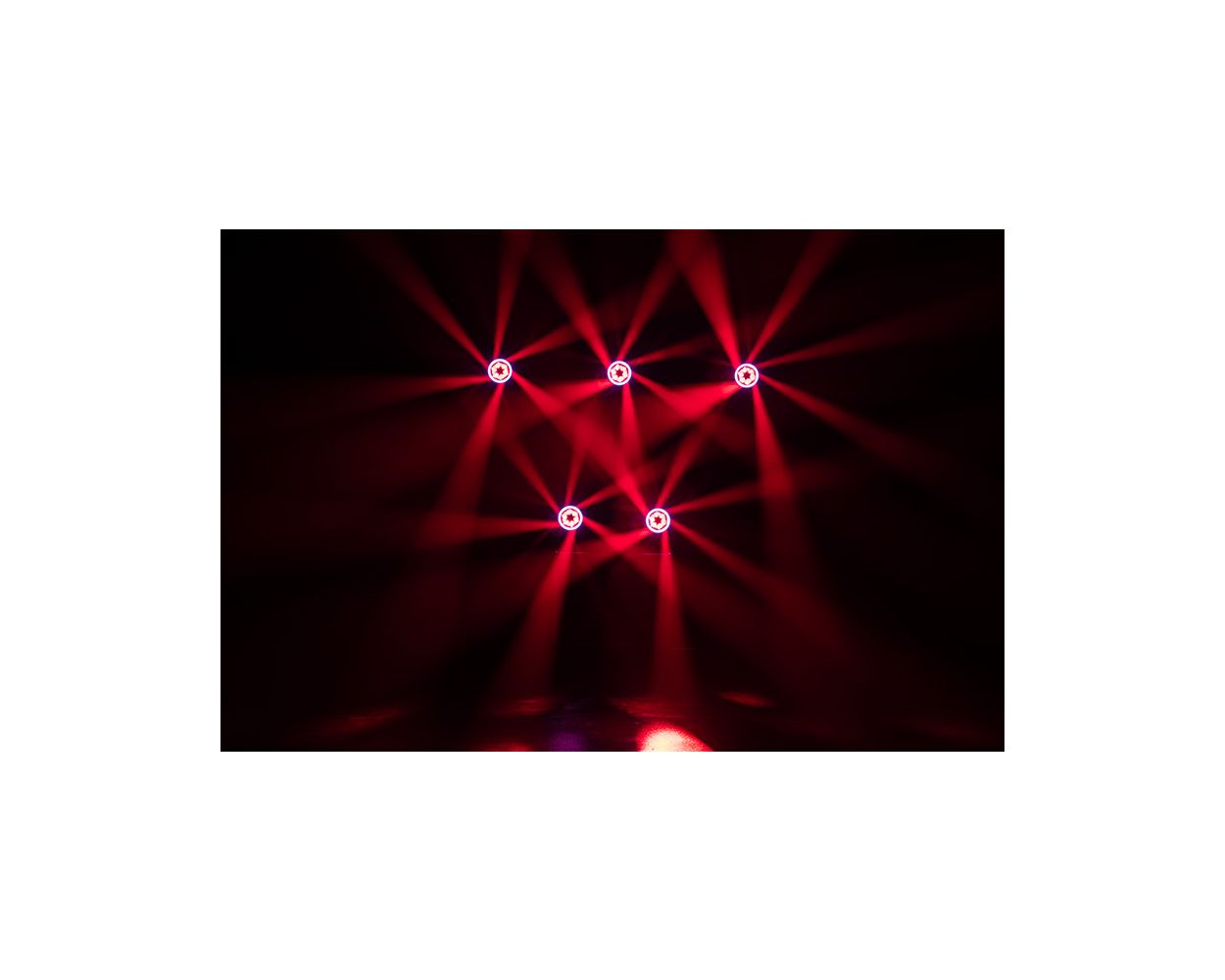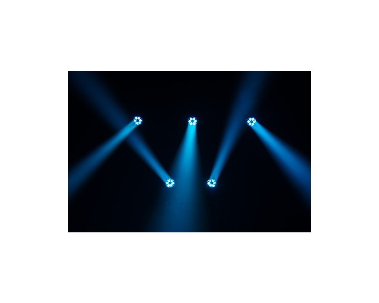 The fixture offers a wide variety of internal programs for easy standalone, sound activated, or Primary/Secondary operation as well as comprehensive DMX control. A sizable LED display screen on the front of the fixture, paired with four navigation buttons, provides an intuitive menu-driven interface for easy setup and DMX addressing. In addition, the fixture supports the RDM protocol, which allows its DMX address to be assigned remotely using a compatible DMX control system.
