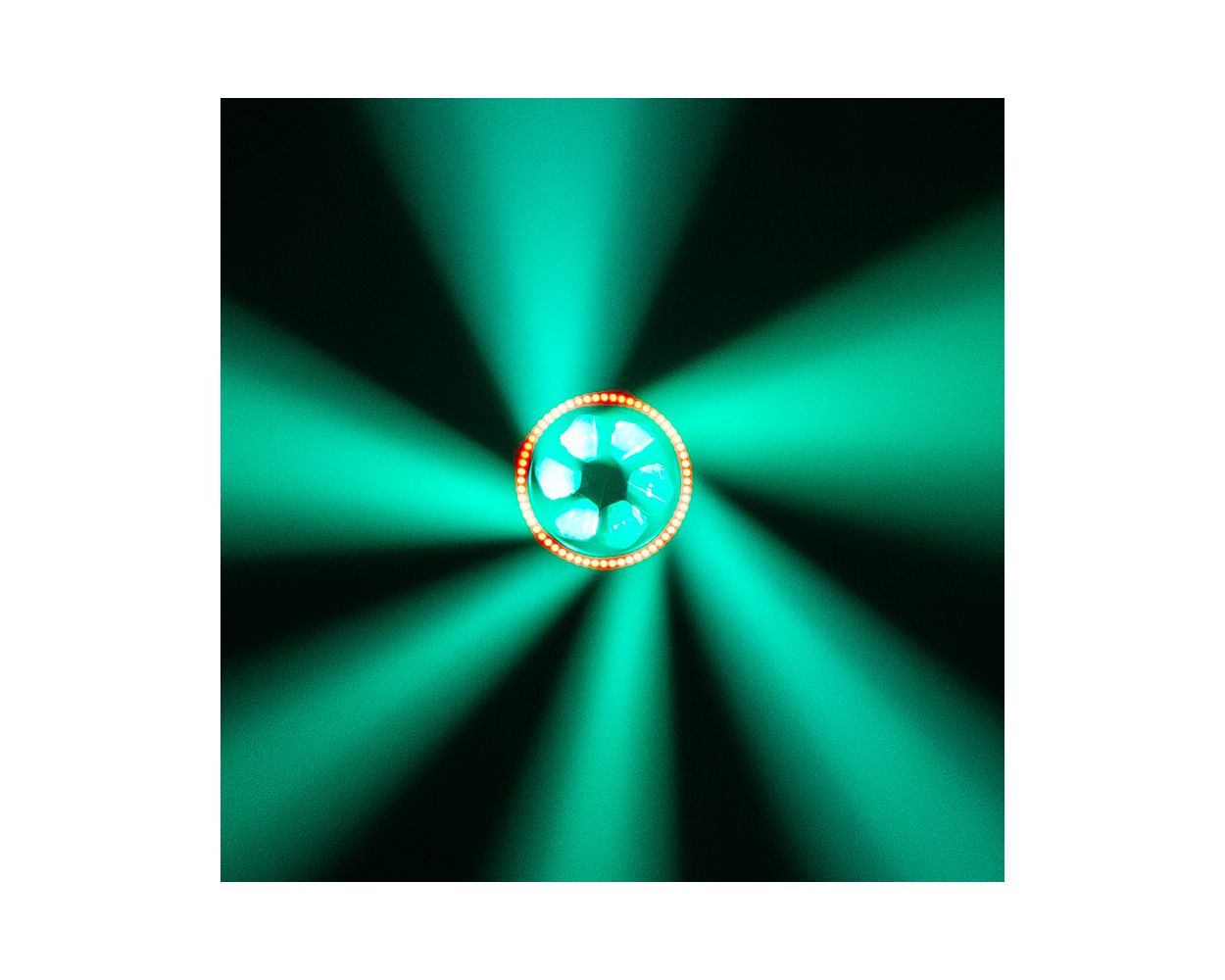 The Stryker Max features six high-output 40-Watt RGBW (red, green, blue, and white) color mixing LEDs attached to a motorized zoom mechanism and positioned behind a rotating lens assembly. This allows the fixture to output a narrow beam of 4°, a wide wash of 55°, and everything in between, as well as kaleidoscopic multi-beam effects. In addition, the head also features an outer ring of 60 x .5-Watt RGB LEDs which can be used to add mesmerizing ‘eye candy’ visual effects. Plus, control white color temperature with the built-in presets from 2800K to 8500K.