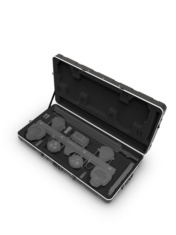 Taking the power of your GigBAR anywhere is easier than ever with CHS-GBM, a Hard-shell case designed to efficiently transport a GigBAR from show to show. The case is made of high strength polypropylene material and is resistant to water and the rigors of the road. CHS-GBM has dedicated space for the fixture, tripod, foot switch, RF remote and multiple DFI-USB and DFI-XLRs so there is no part of your GigBAR rig you can’t take with you. The custom molded interior ensures a damage-free transportation experience and built-in wheels make movement stress-free. Rugged piano hinges allow the lid to remain open without falling down. Product sold separately.