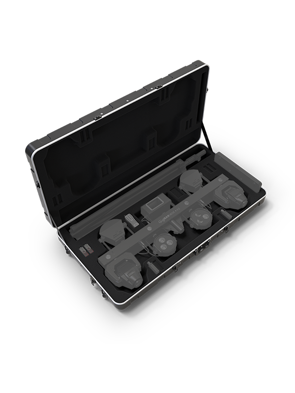 A water-resistant, durable case for transporting your GigBar setup. It features dedicated compartments for components and a molded interior to ensure safe transit. It also has built in wheels for easy mobility.