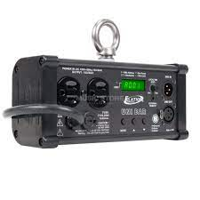 The UNI BAR is a compact single DMX channel dimmer featuring 10 amps of maximum channel output, dimmer or switch pack modes, dimmer preset and limit settings, local HTP dimmer control, input for an optional analog HTP dimmer controller, power failure memory, 3pin DMX in/out (5pin effective May 1, 2019), (2) Edison 3-prong outputs, 3-button control panel and LCD display, and can be easily mounted using standard truss clamps or couplers.