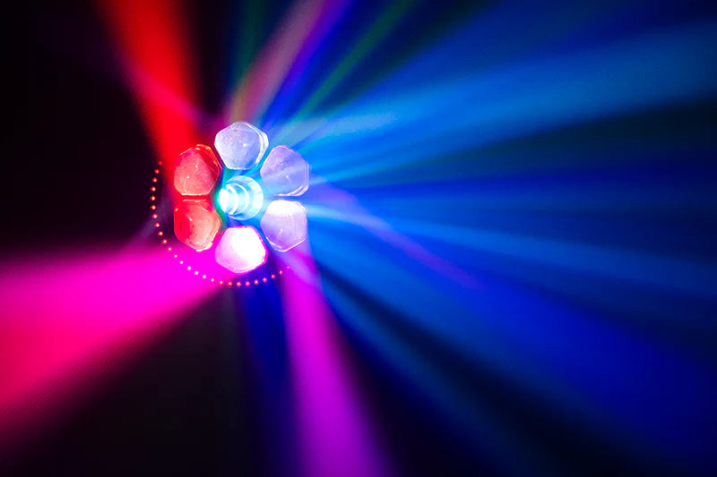Enhancing its creative scope even further, the fixture’s center houses an additional 60-watt RGBL LED that produces a mesmerizing multi-colored kaleidoscope effect, bringing a dynamic, rotating burst of color to the center of the beam pattern. Then, on the outside edge of the fixture’s face is a ring of sixty 0.5-watt RGB LEDs designed to deliver vibrant ‘eye candy’ effects, ideal for creating captivating visuals on stage or in camera-friendly environments. Each of the primary LEDs offers independent pixel control, while the fixture’s built-in FX macros and speed adjustments enable quick and easy programming of complex layered effects.