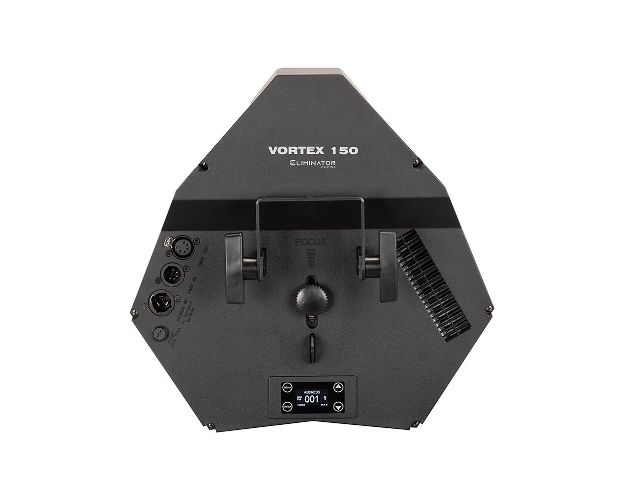 The Eliminator Vortex 150 is a classic moonflower effect with a barrel mirrored scanner that produces multiple razor-sharp 3-degree beams of light powered by an 150W LED engine. It features 11 Color/GOBOs combinations, GOBO shake effect, mesmerizing strobe effects and has 6 built-in light shows.