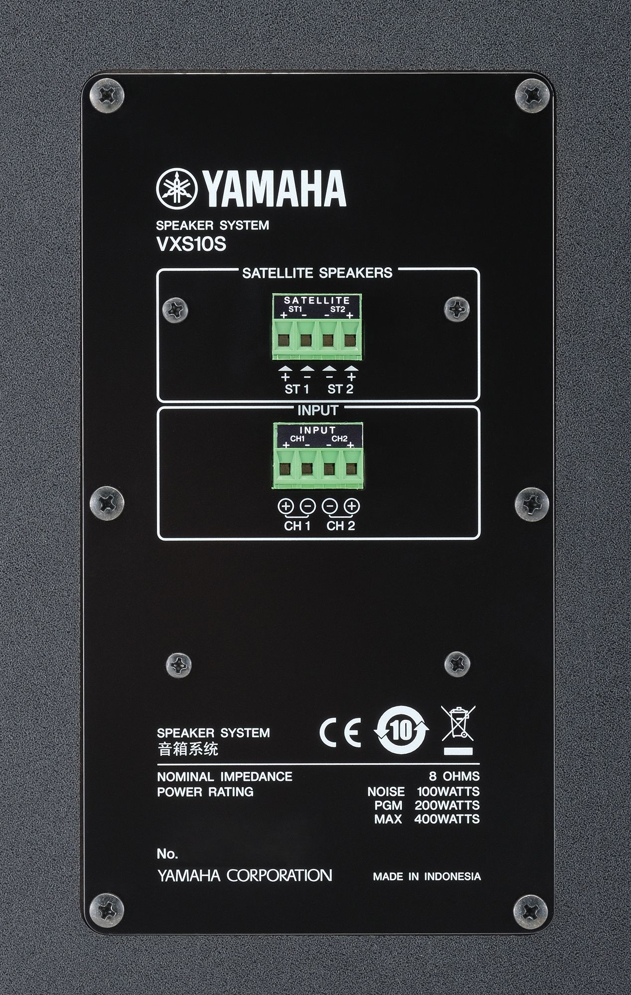 The Yamaha VXS10S 10" dual voice coil subwoofer for low impedance systems supports satellite speakers in the VXS line.