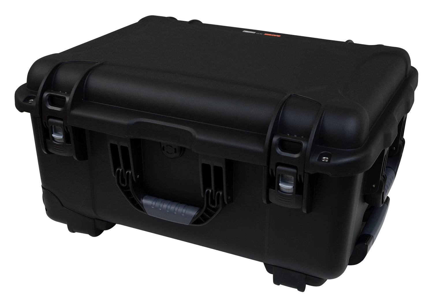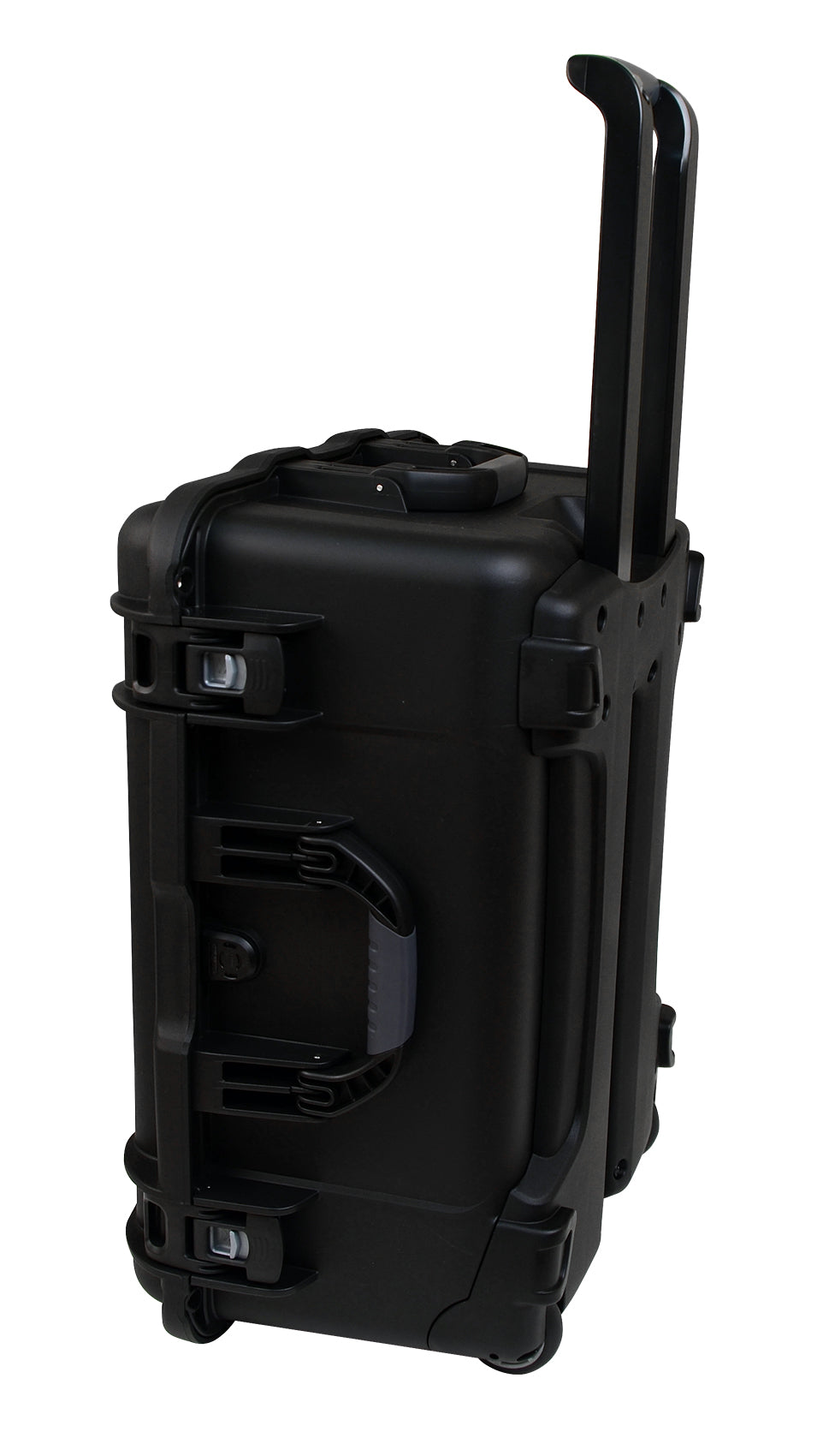 Black injection molded case with pullout handle and inline wheels. Interior dims 22″ x 17″ x 12.9″. NO FOAM
